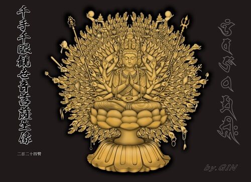 42手バージョン 千手観音とされる最低本数の腕は42本らしいです。 (ちなみに顔がひとつで腕が20本近くあるものは、准胝観音という観音様で、千手観音とは別ものです) 42本も描くとなると大概しんどかったけども やっぱ千本腕あるほうがカッコええ…