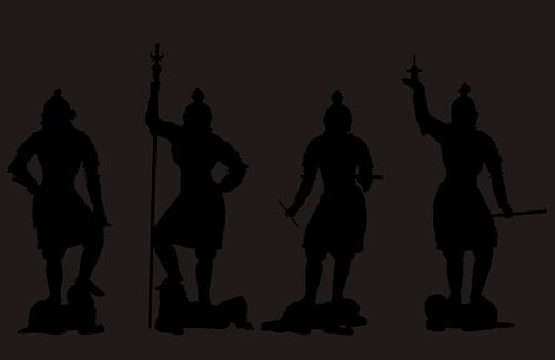 このシルエットですぐにわかりますかね? 正解は。。。四天王です。 四天王には色んな造形がありますが 私的に一番しっくりくるイメージのものを選びました。 もともと絢爛豪華に彩色された四天王もあるけど なんつーか、派手派手であまりにごちゃごちゃして…