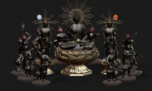 せっかくなんで薬師如来ご一行を並べてみた! 薬師十二神将 像の色や大きさ比率、如来の装飾(本来は舟形光背)など違いはあるものの 薬師三尊に、新薬師寺に基づいた配置を追加してみました^^ 超甘口の手前味噌ながら、圧巻ですなっ!! やっぱユニットが…