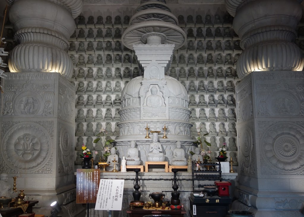 地蔵堂横の階段を下りてくと、境内2層目、大石佛群の前に出ます。
